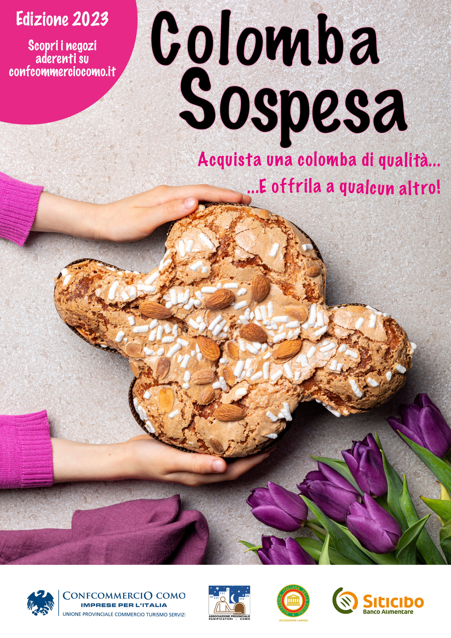 La “Colomba Sospesa”, iniziativa patrocinata da Confcommercio Como e dalla sua Associazione Provinciale Panificatori e Pasticceri su proposta della Delegazione Lariana dell’Accademia Italiana della Cucina, può contare sulla collaborazione del Banco Alimentare della Lombardia, attraverso il programma Siticibo, che provvede alla distribuzione dei dolci presso la loro rete di assistenza legata al mondo della fragilità familiare e sociale.