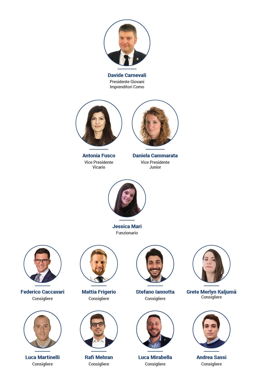 Direttivo 2018 - 2023Presidente: Carnevali Davide Vice Presidenti: Fusco Antonia (Vicario), Cammarata Daniela (Junior) Consiglieri: Frigerio Mattia, Iannotta Stefano, Martinelli Luca, Rafi Mehran, Mirabella Luca, Sassi Andrea |